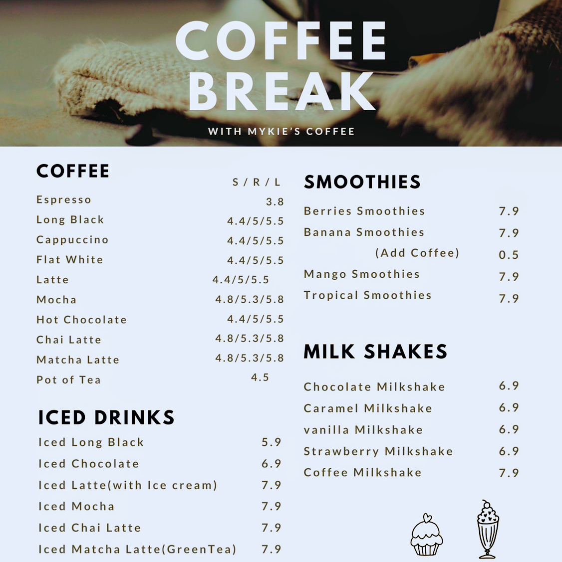 Mykie’s Cafe on Lily offers a straightforward and inviting café menu designed for casual dining and everyday moments. The selection features simple, comforting bites like quesadillas served with salsa or a fresh vegetable frittata paired with salad, ideal for brunch or a relaxed lunch.